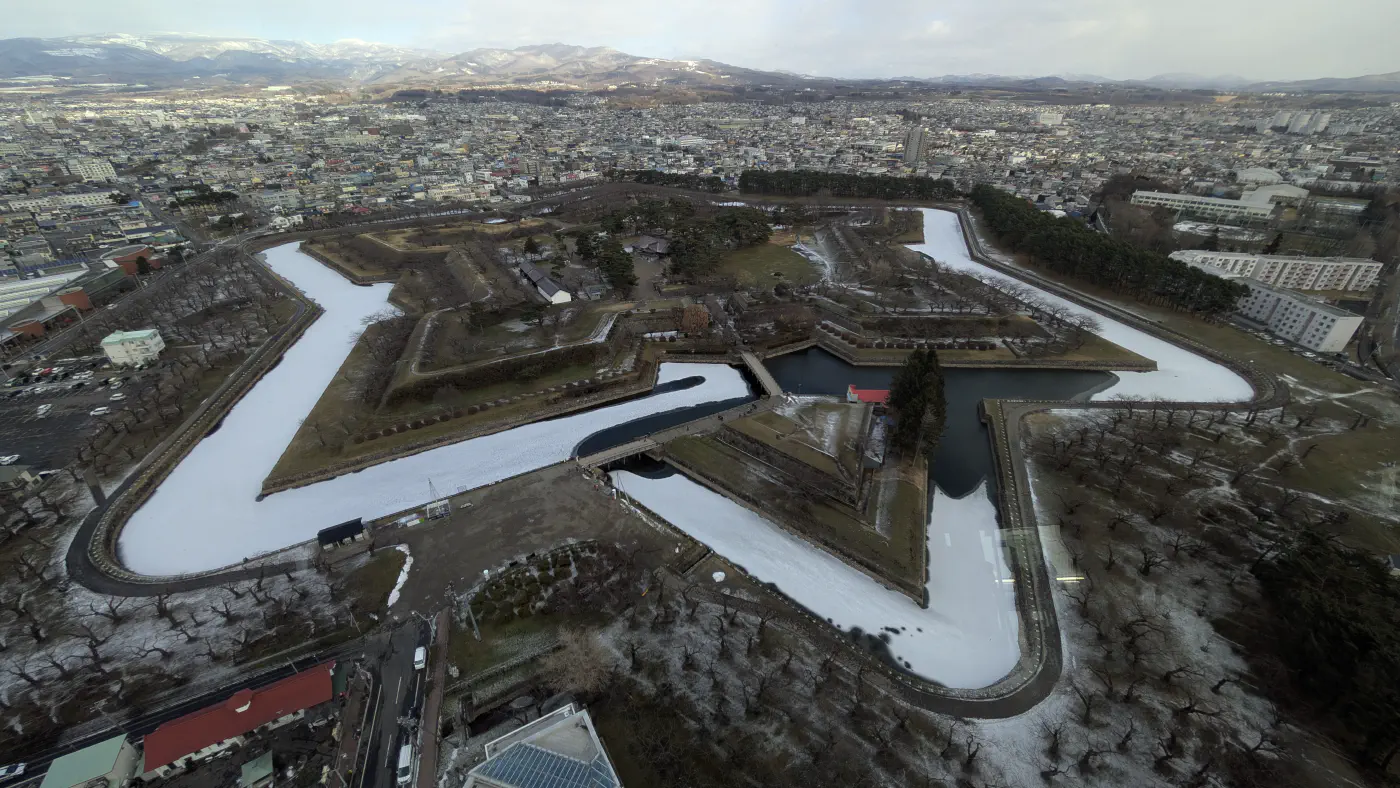 Erreichbar ist diese beeindruckende Anlage ganz entspannt mit der besagten Tram. Schon beim Aussteigen und dem kurzen Fußweg zum Park merkt man die historische Bedeutung und die schiere Dimension des Ortes. Es handelt sich um Japans erste im westlichen Stil erbaute Festung, angelegt in einer perfekten, fünfzackigen Sternform. Für jemanden, der Symmetrie und durchdachte Ingenieurskunst zu schätzen weiß, ist dieser Ort faszinierend.
