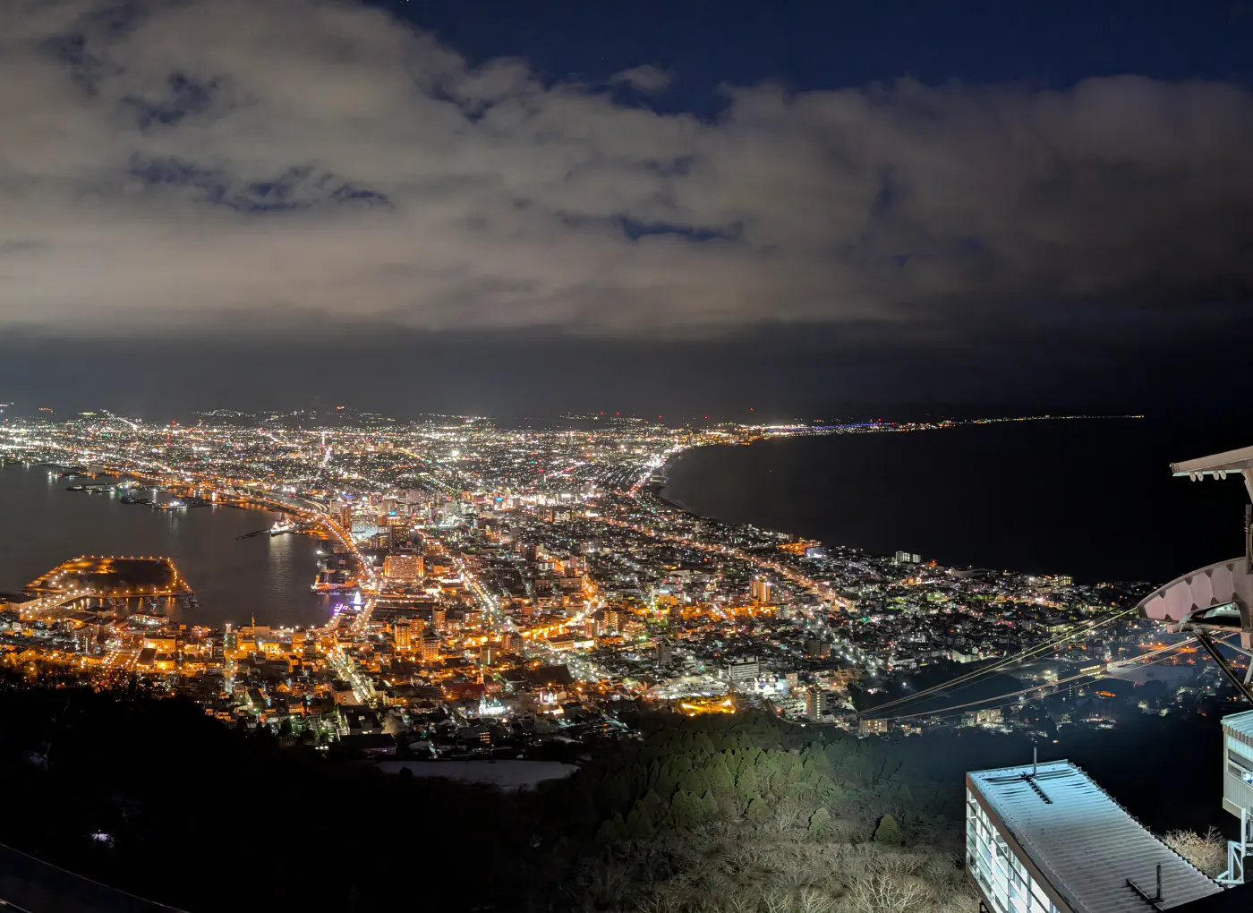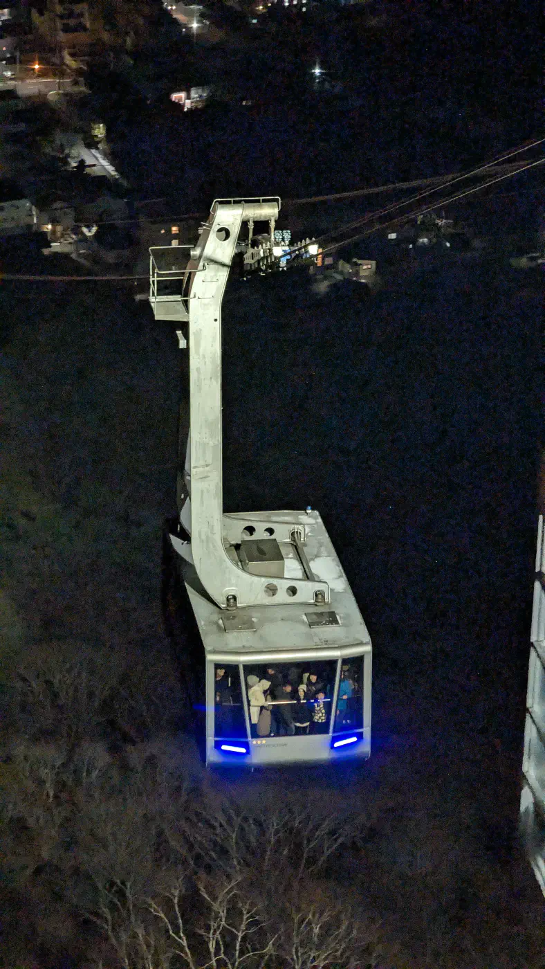 Natürlich darf der klassische Aussichtspunkt einer jeden Hakodate-Reise nicht fehlen. Doch statt sich in einen vollen, schwankenden Touristenbus zu quetschen und die Serpentinen hochzuquälen, führt eine technisch weitaus elegantere Seilbahn (Ropeway) direkt zum Gipfel. Die Fahrt selbst bietet schon einen Vorgeschmack auf das Panorama.