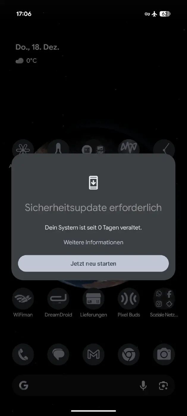 Doch selbst die beste Aussicht und die schönste analoge Erfahrung sind heutzutage nicht vor der digitalen Realität sicher. Mitten in diesem Genussmoment, als ich die perfekte Lichtstimmung einfangen wollte, beschloss mein Google Pixel 9 Pro XL, dass genau jetzt der absolut perfekte Zeitpunkt für ein unaufschiebbares Zwangsupdate ist.