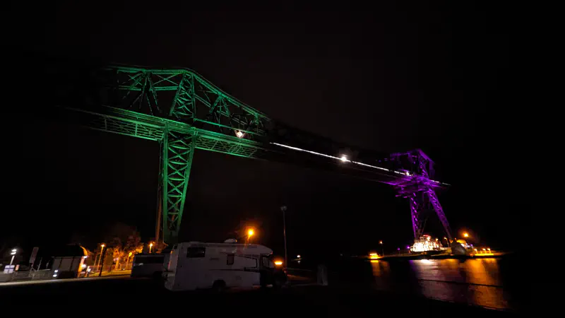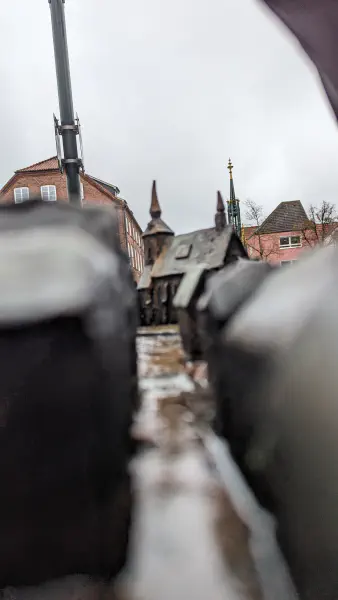 Den Anfang meines Ausflugs machte ich in Rendsburg. Dort besuchte ich die Hochbrücke, die die beiden Ufer des Nord-Ostsee-Kanal verbindet. Die Brücke ist ein Wahrzeichen der Stadt und bei Nacht besonders schön beleuchtet. Die Beleuchtung ist interaktiv und ändert sich je nach Eingabe der Leute an der Brücke. Da ich die Schwebefähre am Abend nicht mehr genutzt hatte, konnte ich das Licht nur auf einer Seite anpassen.
