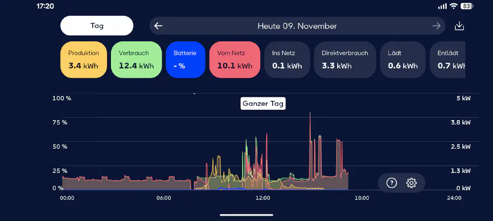 Während ein so kurzer Ausfall oft unbemerkt bleibt oder als einfaches “Flackern” abgetan wird, liefern moderne Haus-Energiemanagementsysteme unbestechliche Daten. Ein Blick in das Dashboard meiner Sonnenbatterie (siehe Bild) bestätigt den Vorfall auf die Sekunde genau.